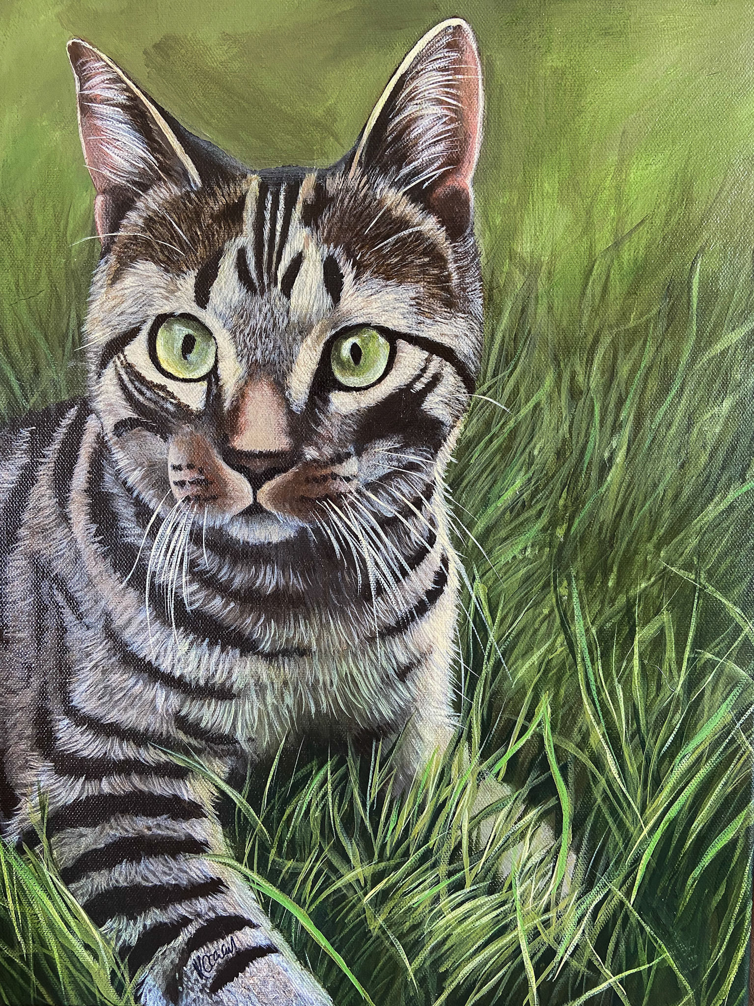 I’m a painter specializing in acrylics (with the occasional oil piece), creating vibrant landscapes and expressive wildlife art. I’m also open to commissioned pet portraits—bring me your furry, feathery, or scaly friend, and I’ll paint them with such striking accuracy it may genuinely take your breath away.